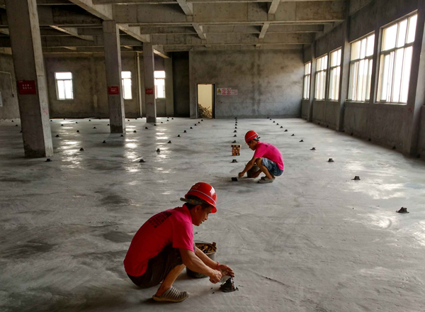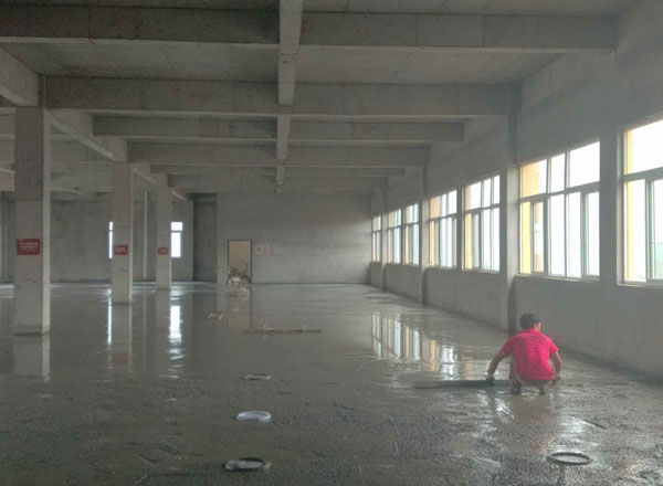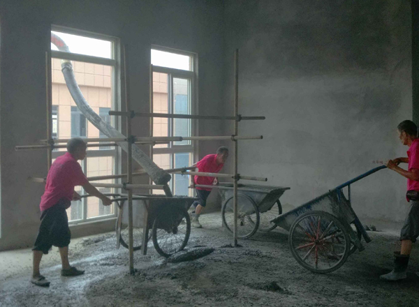 下圖為重慶華發(fā)施工人員在進行二層地面現(xiàn)澆10CM混凝土加抗裂筋。