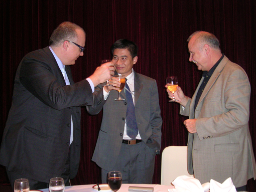 我司于2004年9月25&26日與杜拉維特成功簽約,此次簽約的項目是對重慶杜拉維特潔具有限公司的廠房和辦公樓進行裝修,在重慶市江津區油溪鎮,工期定為60天。而出席簽約的人員包括業主方Mr.dirk Lange(朗格先生)、Mr.Yu Yang(余泱先生)以及我司周庶津、陶安陽、蘭元媛。