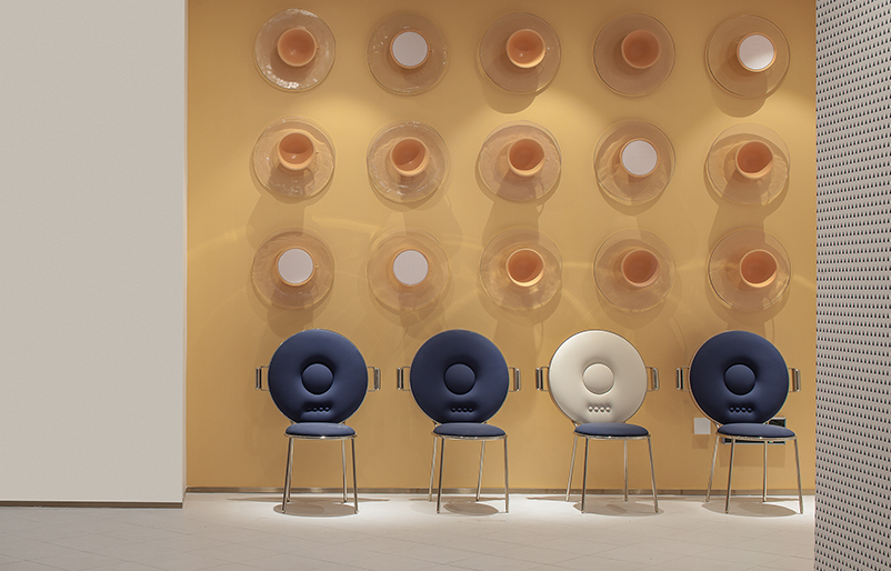 二樓,2樓,作為用餐空間。重點(diǎn)放在走廊末端區(qū)域的設(shè)計(jì)上,使用彩色背景墻以及與餐廳相關(guān)的有趣家具和裝置。