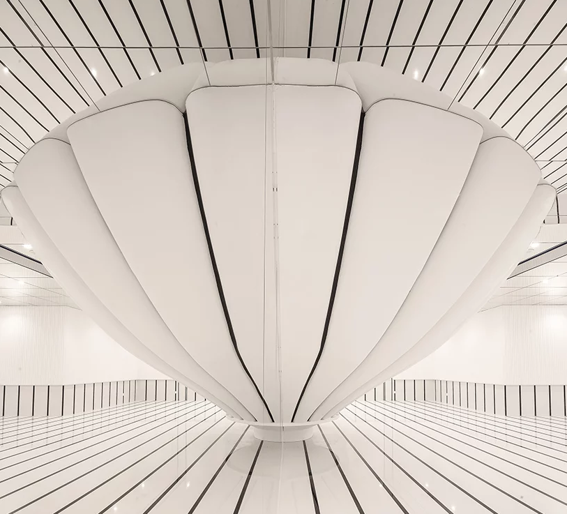 一樓,作為大堂和接待區(qū),有兩個(gè)入口。主入口位于南側(cè),人們可以從那里到達(dá)大堂的主要區(qū)域和工作區(qū)。北區(qū)的二級(jí)入口通向用餐區(qū),采用大型引人注目的藝術(shù)裝置,形狀為熱氣球。