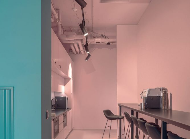 波蘭公司辦公室裝修為了讓一個流動的工作環境發揮所有空間線索的作用,建議辦公室裝修再刪除劃分和垂直層次結構,并用一個水平的平等的空間結構取代。創意團隊的所有成員,包括接待員、執行助理、設計師、平面設計師、客戶服務人員、文案撰寫人和創意總監,都坐在一張桌子上。
