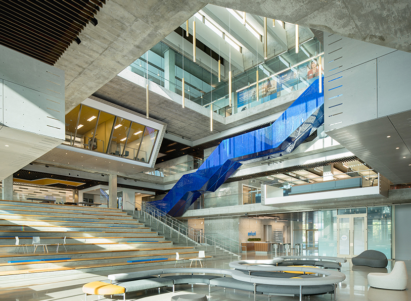 四層185400平方英尺的MWB一期的辦公室裝修規劃和幾何結構,這一辦公室裝修設計解決了Intuit員工的具體規劃和協作需求,加強了校園模式和凝聚力,并在街上創造了興趣。辦公室裝修的頂樓適合人們進行協作,集中,社交和反思的各種場所,被組織成人性化的社區,并聯系在一起。辦公室裝修設計的咖啡廳,起居室,自行車設施等等區域,一次可容納多達500人,并通往校園內部的主要街道。