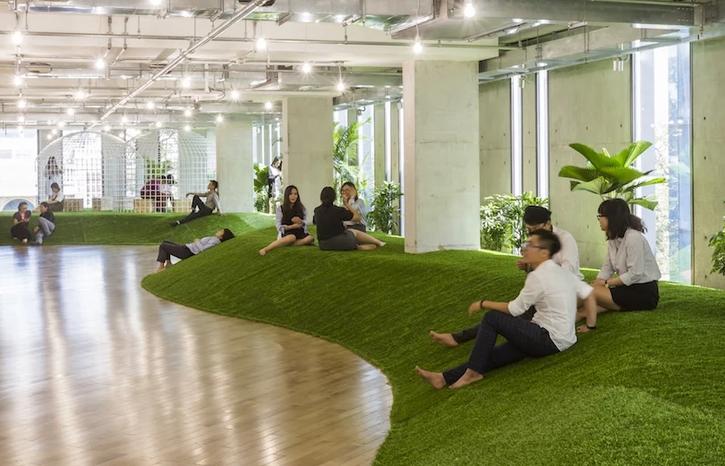 離工作地方不遠(yuǎn)的地方,就是一個(gè)休閑區(qū),這是一種獨(dú)特的辦公室裝修設(shè)計(jì)。