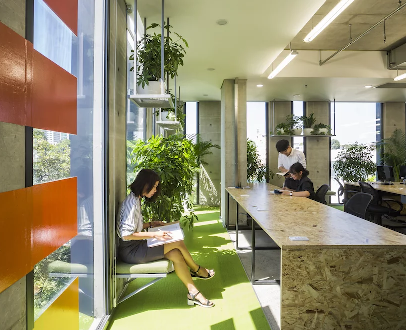 胡志明市這家旅游公司的越南辦事處進(jìn)行的辦公室裝修設(shè)計(jì)中,為了能提高工作效率,打造了一個(gè)“綠色辦公室”,因?yàn)樵O(shè)計(jì)師相信用植物來裝飾空間,可以增強(qiáng)工作能力。下面一起跟著華發(fā)小編來看看這家辦公室裝修效果圖吧。