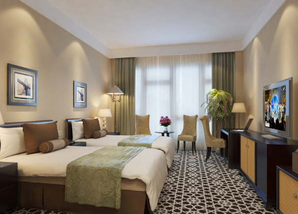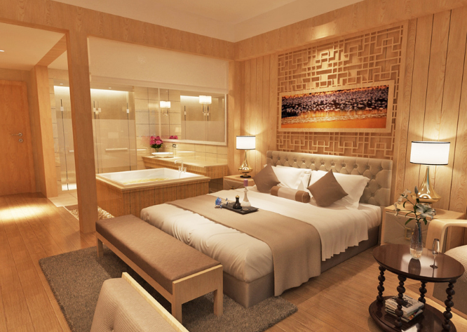 3、客房布置對于賓館來說是較重要的空間,客房的裝修的好壞就能夠反映出賓館的水平,客房空間布局應該平淡穩重??头坑诳傮w的空間布局上,應做到平淡無奇,穩中求勝。