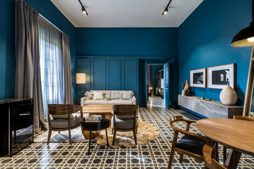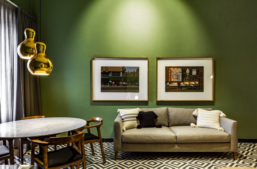 酒店裝修色彩是裝飾的一個重要特征,常見的區域主要是單色的。七個客人套房(從41平方米到95平方米)的特點是用灰色、藍色、紫色、紅色和綠色色調來喚起休息和邀請放松的調色板。